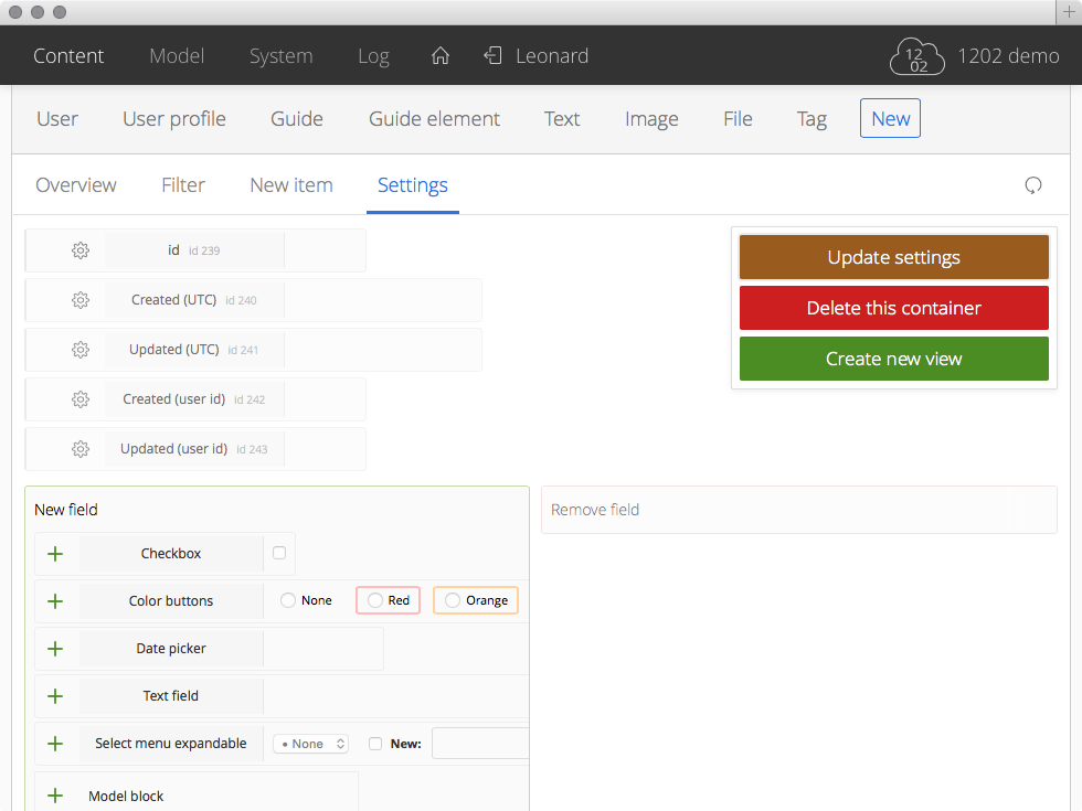 With the 'Content' section set to our site's needs, we can now focus on the models to actually deliver the content. Models are intermediaries between your 1202 system and the outside world. Nothing can get out of it without a model.